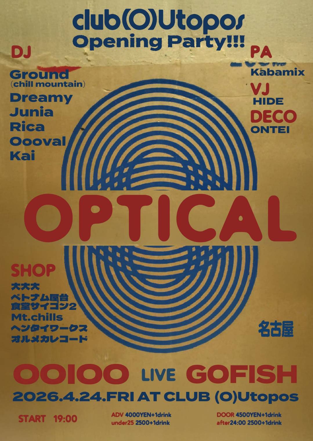 advance 4,000JPY / door 4,500JPY / under25 2,500JPY +1drink